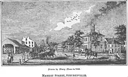 An 1846 engraving of downtown Steubenville, with the Jefferson County Courthouse visible on the right