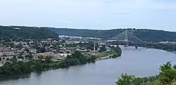 The Veterans Memorial Bridge connects Steubenville to Weirton, West Virginia, across the Ohio River via U.S. Route 22.