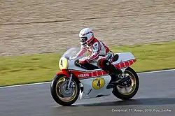 He then returned the United States to compete in the AMA Grand National Championship where he earned his first AMA national victory when he won the Loudon Classic.[3] He also won the 250cc support class at the Loudon Classic.[3] He repeated his Loudon victories at the Laguna Seca Raceway, again winning the national and the 250c support race.[10] He then returned to Europe where he won the Mallory Park Race of the Year.[11] By the end of the 1976 season, Baker was considered to be Kenny Roberts' equal in road racing.[12]