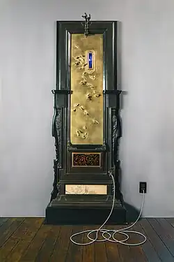 Brudniak's assemblages engage the phenomena of consciousness through applications of experimental phenomenal media, incorporating, often pioneering, unconventional and scientific elements such as high voltage electricity, gyro mechanics, combustion, ultraviolet, laser, optical and fiber optic technologies, as well as the oldest known geological and living preservations. His 1987 Imogene Icon (collection of San Antonio Museum of Art)[10] is considered the earliest application of a Tesla coil incorporated into a permanent sculpture and his 1991 sculpture The Saturated Well of Baptism, the first to use magnetic ferrofluid in a sculptural context.[1][4][7][11][12]
