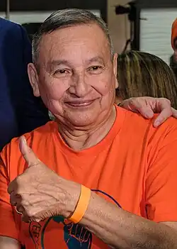 Grand Chief Stewart Phillip is an Okanagan Aboriginal leader who has served as president of the Union of British Columbia Indian Chiefs since 1998. As chief of the Penticton Indian Band in British Columbia from 1994 until 2008, as well as chair of the Okanagan Nation Alliance, he has advocated for Aboriginal rights for the First Nations in that province, particularly in the Okanagan region.[1][2] He was awarded the title Grand Chief by the Okanagan Nation in 2006 in honour of his lifetime of commitment to and work for Indigenous rights and title.[2]