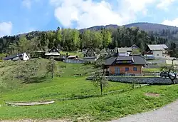 The local church is dedicated to the Holy Cross and dates to 1751, when the old church in the center of the village was demolished and the current church was built on a small hill above the village.[4] The church features Stations of the Cross painted by Leopold Layer (1752–1828).[3]