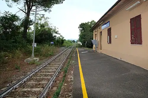 Sticciano railway station is an Italian railway station on the Siena–Grosseto railway line, located in Sticciano, in the municipality of Roccastrada, Province of Grosseto, Tuscany.