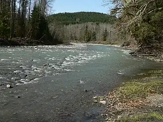 The Stillaguamish River is formed from the confluence of the North and South Forks, both of which rise in the Cascades. Between the North and South forks there is a portion of the Mount Baker-Snoqualmie National Forest called the Boulder River Wilderness.