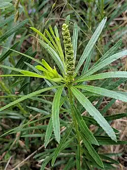 Stillingia texana, the Texas toothleaf,[2] is a species of flowering plant in the family Euphorbiaceae.[1] It is native to the South Central United States and Mexico. In central Texas it is widespread in upland, calcareous prairies, spreading north to scattered locations in Oklahoma and south to Coahuila.[1] Stillingia texana was described in 1923 by Ivan Murray Johnston.[3]