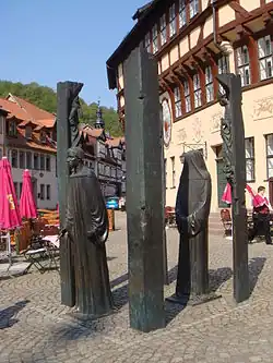 • St. Martin's Church. A Late Gothic church where Martin Luther preached on 21 April 1525 against the Peasants' Revolt. The restoration of the three-aisled basilica from the 13th century is very expensive, thanks to its hillside location. Here, too, the German Foundation for Monument Conservation is involved, alongside other donors. Northwest of the church is St. Mary's Chapel. The Müntzer Monument, made by the sculptor, Messerschmidt, was erected just in front of the town hall on the birthday of Thomas Müntzer in 1989.