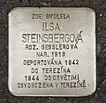Steinsbergová, IlsaIlsa Steinsbergová née Gesslerová was born on 11 June 1918. Her parents were Max Gessler and Terezie Gesslerová (see above). She had a younger sister: Lída (born 1922). Ilsa Steinsbergerová, her sister and the parents were deported to Theresienstadt concentration camp from Olomouc on 26 June 1942 by transport AAf. She was a pharmacist, worked in the central pharmacy of Theresienstadt concentration camp. Then she was deported to Auschwitz and later used in Oederan in weapons production.[8] The stone says, that she was liberated in Theresienstadt, another source says, that she and her sister were liberated from Bergen-Belsen concentration camp. She returned tu Hranice, married Robert Steinsberg. The couple has two Daughters: Helena, later married Weil and Hana. later married Horynová.[9][6]