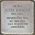 BERTA KAFKOVÁ BORN 1884 DEPORTED 1942 TO THERESIENSTADT 1943 TO AUSCHWITZ MURDERED |