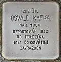 OSVALD KAFKA BORN 1908 DEPORTED 1942 TO THERESIENSTADT 1943 TO AUSCHWITZ MURDERED |