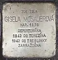 GISELA MOSAUEROVÁ BORN 1876 DEPORTED 1942 TO THERESIENSTADT 1942 TO TREBLINKA MURDERED |