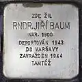 DR. RER. NAT. JIŘÍ BAUM BORN 1900 DEPORTED 1943 TO WARSCHAU MURDERED 1944 IBIDEM |