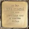 OLGA SOJKOVÁ BORN 1895 DEPORTED 1942 TO THERESIENSTADT SURVIVED |