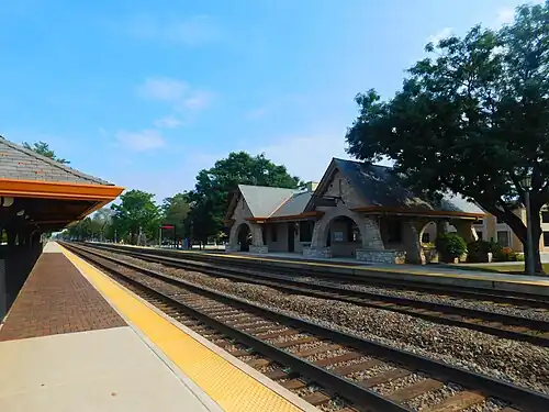 Stone Avenue (also known as La Grange–Stone Avenue) is a station on Metra's BNSF Line in La Grange, Illinois. The station is 14.1 miles (22.7 km) from Union Station, the east end of the line.[2] In Metra's zone-based fare system, Stone Avenue is in zone 3. As of 2018, Stone Avenue is the 55th busiest of Metra's 236 non-downtown stations, with an average of 946 weekday boardings.[1] An unstaffed station building is on the south side of the three tracks.