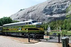 The railroad utilizes what was originally an industrial spur built in 1869 by the Stone Mountain Granite Company to serve quarries at the foot of the Stone Mountain, with a connection to the Georgia Railroad's main line in Stone Mountain Village. The railroad later started an excursion service to the mountain. The spur was later abandoned, leaving the right of way in place (with the rails removed). In 1960, Stone Mountain Scenic Railroad, Inc. was formed to construct a tourist railroad encircling the mountain, operating it under lease from the Stone Mountain Memorial Association (a state-operated association established in 1958 for developing and managing the mountain as a park). Between 1961 and 1963, two miles of former quarry trackage were rebuilt, followed by construction of additional new trackage to complete the road around the perimeter of the mountain.[1] The mileage of the circuit around the mountain is advertised as being 5 miles (8.0 km) long, however, the actual mileage is 3.88 miles (6.24 km).