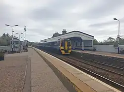 Stonehaven railway station serves the town of Stonehaven in Aberdeenshire, Scotland, United Kingdom. It is sited 224 miles 74 chains (362.0 kilometres) from Carlisle via Perth, on the Dundee to Aberdeen line, and is situated between Laurencekirk and Portlethen. There is a crossover at the southern end of the station, which can be used to facilitate trains turning back if the line towards Aberdeen is blocked.[3]