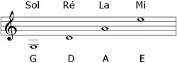 The pitches of open strings on a violin. Play