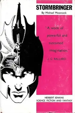 Stormbringer is a 1965 novel written by Michael Moorcock and featuring the character Elric of Melniboné.[1][2][3] It is a partly abridged fix-up of four previously published stories from Science Fantasy 1963-1964, namely "Dead God's Homecoming", "Black Sword's Brothers", "Sad Giant's Shield" and "Doomed Lord's Passing". Moorcock restored and revised the text for the US edition of 1977.