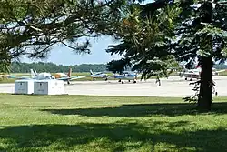 The airport is classified as an airport of entry by Nav Canada and is staffed by the Canada Border Services Agency (CBSA) on a call-out basis from the Waterloo International Airport on weekdays and the John C. Munro Hamilton International Airport on weekends. CBSA officers at this airport can handle general aviation aircraft only, with no more than 15 passengers.[1]