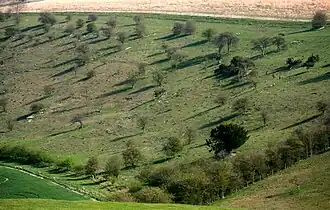 The site runs along The Ridgeway.[4] The site features terraced land in a dry chalk valley.[5]