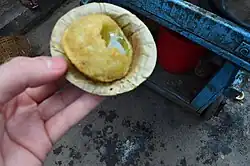 Street food of Kolkata is the food sold by hawkers and street vendors from portable market stalls in the streets of Kolkata, India. It is one of the major characteristics of the city, which makes Kolkata the "City of Joy". Kolkata's street foods include Indian street food as well as Chinese, Mughlai, British, and even European foods.[1]