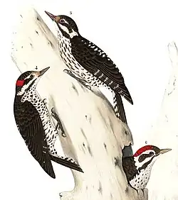 Strickland's woodpecker was first described by the French ornithologist Alfred Malherbe in 1845 and given its current name which commemorates the British scientist Hugh Edwin Strickland.[2] Some taxonomic authorities, including the American Ornithological Society, continue to place this species in the genus Picoides.