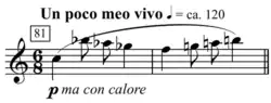 This movement begins with a slow introduction by the viola alone marked "Mesto." The movement derives its material from this slow introduction to make a sort of sonata allegro form in D minor.[12] This structure may reflect the influence of Gustav Mahler, for it resembles the beginning of Gustav Mahler's Tenth Symphony with an introduction with a viola solo that is highly chromatic.[4]