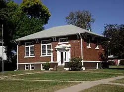 Stromsburg was settled early in Nebraska history. A group of Swedish settlers from the town of Ockelbo arrived in the 1860s after several years in Illinois. This group was led by Lewis Headstrom, who was a real estate agent. Seeing some similarities to their old Swedish homeland the settlers formed what would be called Stromsburg, named after a section of Ockelbo, Sweden.[5] By the 1880s, two brickyards were in operation in the town. Many buildings constructed of ‘native’ brick still stand, including the Viking Center, now a community center that was originally The Opera House; the Cornerstone Bank; two businesses on the east side of the square; and several homes. Brick streets still surround the city square in Stromsburg. A brick Carnegie library was built in Stromsburg in 1918. The downtown area of Stromsburg has a town square in its center. This square forms a park, with lawns and mature trees, where festivals and events are held. In the center of the square is a two-story Swedish style building made of brick with decorative toll painting and the phrase "Välkommen" (Swedish for "Welcome").