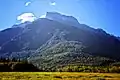 Stupendous Mountain was described by Sir Alexander Mackenzie on 17 July 1793: "Before us appeared a stupendous mountain, whose snow-clad summit was lost in the clouds."[4][5][6] A 1947 map confined the name Stupendous Mountain to the higher southern peak (2,697 m) on the massif; at the same time the northern peak was adopted as Table Mountain.[4] The landform's toponym was officially adopted as "Stupendous Mountain" on November 1, 1979, by the Geographical Names Board of Canada and was shifted to the lower northern peak, while the name "Table Mountain" was rescinded.[2] The mountain's Native American name is Chil-a-thlum-dinky.[7]