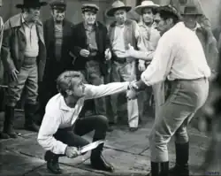 The 1952 film, The Iron Mistress, based on Paul Wellman's 1951 novel, starring Alan Ladd as Jim Bowie and Tony Caruso as "Bloody Jack" Sturdevant, also known as Roswell S. Sturdivant, depicts a Hollywood version of the infamous Bowie duel at Natchez Under The Hill.[44] In 1964, Wellman also published the book, Spawn of Evil, which went into more depth about Roswell Sturdivant and his gang and the crime network on the early American frontier.