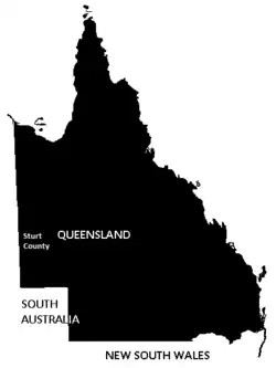 Sturt County is a cadastral division of North Gregory District of Western Queensland and a County of Queensland, Australia.