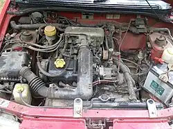 The EF is an automotive engine made by Subaru, introduced in 1984 for the Subaru Justy. It is a water-cooled, straight-three, four-stroke engine with a belt-driven single overhead camshaft, and a chain-driven balance shaft. It has an alloy cylinder head and a closed deck iron engine block with a bore spacing of 86.0 mm (3.39 in). The two-cylinder EK23 engine is closely related to the EF series, sharing the same bore spacing and overall design.[1] The export market 665 cc EK42 motor even shares the bore and stroke of the EF10.