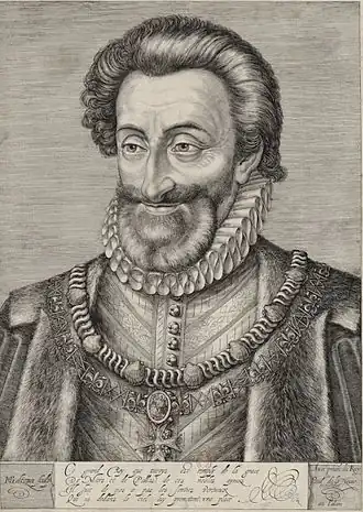 King Henry IV of France, until 1589 known as Henry of Navarre. 17th century engraving by Henri Goltzius.