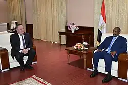 Al-Bashir was deposed as Sudan's president in a coup d'état in April 2019. In September 2019, Sudan's new prime minister, Abdalla Hamdok, said that he held useful talks with U.S. officials while at the United Nations, and expressed hope Khartoum could “very soon" be removed from the U.S. state sponsor of terrorism list.[13] In December 2019, U.S. Secretary of State Mike Pompeo stated that the U.S. and Sudan are to begin exchanging ambassadors after 23 years of no diplomatic relations.[14] That same month, Hamdok became the first Sudanese leader to visit Washington D.C. since 1985.[15]