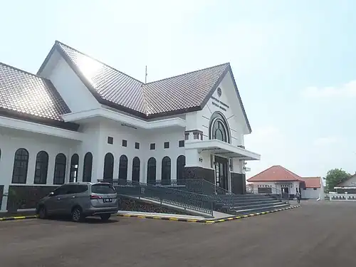 Sukomoro Station (station code: SKM) is a third-class railway station in Sukomoro, Sukomoro, Nganjuk Regency, East Java, Indonesia, operated by Kereta Api Indonesia.[1] This station is located on Kertosono–Nganjuk Road and 200 m southwest of Pasar Bawang Merah Nganjuk ("Nganjuk garlic market" in Indonesian). This station's new building is operated—which has four tracks (two main lines and two passing tracks)—since Baron–Nganjuk double track segment activation on 14 March 2019.[2]
