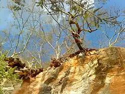 Deciduous trees predominate in limestone areas, reaching about 20 metres (66 ft) in height. These include aroeira, gameleira, angico, cedro, catiguá, embiruçu, paineira and maria-pobre. There are also species typical of the caatinga such as cactos mandacaru and figo-da-barbária, and shrubs such as pimentinha-do-mato. Around the Gruta da Lapinha the predominant trees are semi-deciduous, losing about half their leaves in the dry season, and growing to 15 to 20 metres (49 to 66 ft). These include angico-vermelho, angico-branco, jequitibá-branco and paineira. The original forest has been damaged by man, causing impoverishment of the soil and invasion of cerrado species. The park's management plan includes restoration of some of the areas.[1]