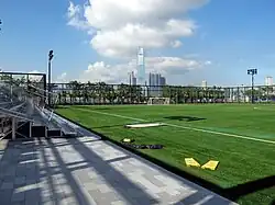 Residents of Western had long lamented the limited recreation and leisure options in the district.[2] Two recreation projects on the Western reclamation near Sai Ying Pun were approved in the Urban Council Capital Works Programme 1986/87–1990/91: an indoor games hall (now the Sun Yat Sen Memorial Park Sports Centre) and the original Western Park.[3] Only part of the site was originally released to the Urban Council since most of the land was required for the construction of the Western Harbour Crossing in the 1990s. Western Park, comprising two hectares, opened in 1991.[4]