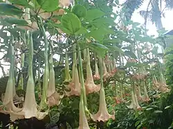 The Gardens currently contain over 500 species of tropical and subtropical plants amidst pools and cascading waterfalls, lushly planted in a collection of more than 50,000 tropical plants and flowers. They include a Japanese garden, cactus garden, and butterfly garden, and Chilean flamingos. Plants include bougainvilleas, royal palms, water lilies, shrimp plants, and fruit trees. The garden atmosphere is peaceful and many of the plants are quite large (compared to typical specimens) due to their long history of protection and cultivation.
