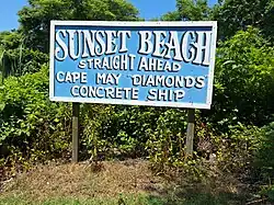 Sunset Beach is a beach located on the Cape May Peninsula, in Lower Township, New Jersey,[1] near Cape May Point, along the Delaware Bay, in the U.S. state of New Jersey. It is a local tourist attraction due in part to its proximity to the SS Atlantus, also known as the Concrete Ship, and the Cape May Lighthouse.