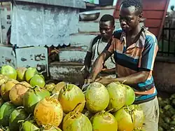 A man selling coconuts in Sunyani