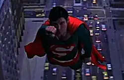 New York City doubled for Metropolis, while the New York Daily News Building served as the location for the offices of the Daily Planet. Brooklyn Heights was also used.[47] Filming in New York lasted five weeks, during the time of the New York City blackout of 1977. Production moved to Alberta for scenes set in Smallville, with the cemetery scene filmed in the canyon of Beynon, Alberta, the high school football scenes at Barons, Alberta, and the Kent farm constructed at Blackie, Alberta.[48][49] Brief filming also took place in Gallup, New Mexico; Lake Mead; and Grand Central Terminal.[10] Director Donner had tensions with the Salkinds and Spengler concerning the escalating production budget and the shooting schedule. Creative consultant Tom Mankiewicz reflected, "Donner never got a budget or a schedule. He was constantly told he was way over schedule and budget. At one point he said, 'Why don't you just schedule the film for the next two days, and then I'll be nine months over?'"[45] Richard Lester, who worked with the Salkinds on The Three Musketeers and The Four Musketeers, was then brought in as a temporary co-producer to mediate the relationship between Donner and the Salkinds,[22] who by now were refusing to talk to each other.[45] On his relationship with Spengler, Donner remarked, "At one time if I'd seen him, I would have killed him."[24]