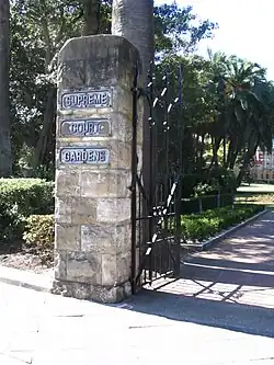 The gardens have had extensive trees, shrubbery and fencing, various small structures at different stages in the grounds in the past.[4]
