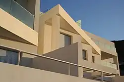Torre's architectural and design practice is “based upon an intense theoretical, ethical, and civic sense of architecture and urban design.”[3] According to architect and author John Loomis,[4] her buildings and theoretical projects “bring together cultural, social and regional themes.” Torre's designs have encompassed a range of scales; from her book cover for Lucy Lippard’s From the Center to her park proposal for Ellis Island, New York Harbor, they have included building renovations, residential design and public buildings. Among her best-known projects are Fire Station Five in Columbus, Indiana; the Ellis Island, New York Harbor, park proposal; the Clark and Garvey Houses in The Hamptons, New York; the Schermerhorn Hall renovation for Columbia University, and the Consulate of the Ivory Coast in New York City. These and other award-winning designs have been published in the US, Latin America, Japan, France, Italy, Germany, Spain and Australia and are included in standard reference sources such as Encyclopedia of 20th Century Architecture, Contemporary Masterworks, Contemporary Architects, and Dictionnaire de l’Architecture du XXme Siècle. She was the first woman to gain one of the highly competitive public commissions in Columbus, IN, where her Fire Station #5 (described below) is listed in the Whitney Guide to 20th Century American Architecture: 200 Key Buildings. In 2008 she completed the residential community of seven seafront houses where she now lives with her husband, writer and sociologist Geoffrey E. Fox, in Carboneras, Spain. The design was based on her 1973 studies on spatial matrixes and indeterminate functions , where “a serial flexibility allows symbol to collaborate with function and marks the allegorical elements in daily life.”[5]