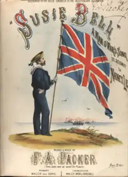 Susie Bell was a popular nineteenth century nautical tune collected by Frederick Augustus Packer around the port at Hobart, in Tasmania. First published in 1882 London.[1] The song is dedicated to the blue jacket sailors of the Australian Squadron, stationed in Australia. The lyrics are a rollicking Australian response to Nancy Lee written by Stephen Adams