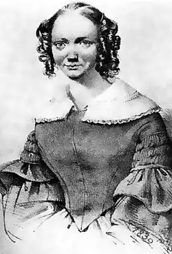 From 1832 to 1834, Suzanne wrote for and edited The Tribune des femmes, the first known working-class, feminist journal (Its editors rejected the use of last names, as subordinating the women to either their fathers or their husbands). Voilquin and the other writers, including Marie-Reine Guindorf and Désirée Gay (Jeanne Desirée Véret Gay) stressed the need for women's rights to divorce, education and work. Voilquin, in particular, emphasized the need for the protection of mothers.[4] In 1834, Voilquin also published Ma loi d’Avenir by fellow Saint-Simonian Claire Démar after she and her lover, Perret Desessarts, died by suicide.[5]