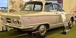 Introduced in August 1965 (and on sale by December), the Fronte 800 was an attempt at competing in a higher market segment than the Suzulight Kei jidosha class offerings. The name from its smaller engined brother, the Fronte, was retained to aid the publicity effort. A four-door 700 cc prototype was shown at the 1962 Tokyo Motor Show, clothed in a body designed by Pietro Frua, reminiscent of his Maserati Quattroporte I and Glas 1700 saloons.[1] This line of development was not followed, with work on the Y4 prototype instead begun in 1962, another prototype appearing at the 1963 Tokyo Motor Show. Imminent production was announced, but at the '64 Motor Show another pre-production model was shown, with sales promised for the spring of the following year. Actual production, never but in a small scale and largely hand built, began in December 1965.[1]