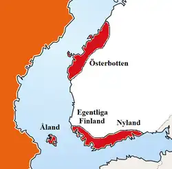 There are four traditional areas of Svenskfinland (Finnish names are given within brackets):