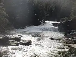 Swallow Falls State Park is a public recreation area located on the west bank of the Youghiogheny River nine miles (14 km) northwest of Oakland in Garrett County, Maryland, in the United States. The state park features Maryland's highest free-falling waterfall, the 53-foot (16 m) Muddy Creek Falls,[3] as well as smaller waterfalls on the Youghiogheny River and Tolivar Creek.[4] The park is notable for its stand of old hemlock trees,[5] some more than 300 years old, "the last stand of its kind in Maryland."[6]