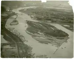 The island was first noted as "Willow Island" by the United States Exploring Expedition in 1844.[3][4] River traffic on the Willamette was impeded by a bar near the island, and annual dredging by the U.S. Army Corps of Engineers was required to maintain a navigable channel.[5] A 1914 Oregonian article reported that the Portland Commission of Public Docks was unanimously in favor of removing the island, instead of developing it for commerce.[6][7][8]