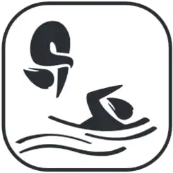 Pictogram used for Aquatics, with diving (left) and swimming (right) represented.