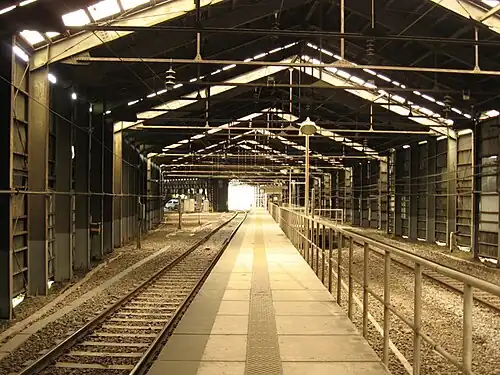 Before the opening of the Yamagata Shinkansen in 1992, the station used different platforms that could only be accessed through a switchback manoeuvre. However, with upgrades to the line in preparation of the opening of the shinkansen, these old platforms were abandoned on the 1st of September 1990 in favour of the current platforms where there is no need for the switchback manoeuvre.[2]